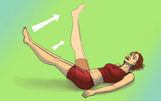 Do Leg Lifts. Lie on the floor, legs straight out, hands at your sides. Lift your legs straight up (not bending your knees at all) until they're at a 90 degree angle (or close). Lower your legs and repeat without letting your legs touch the floor.