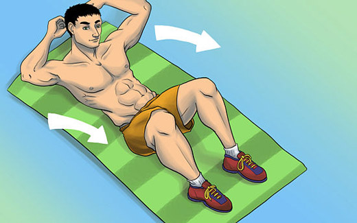 Do Sit Ups. Lie on the floor, feet on the floor, knees up and hands crossed on your chest. Have someone hold your feet down, or wedge them underneath something heavy. Sit all the way up, lifting your lower back off the floor along with your shoulder blades. Keep your back straight (no hunching). Lower yourself down. Repeat.