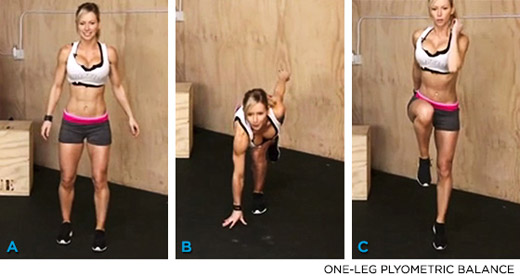 Begin balanced on your right leg. Lean your upper body forward until your left hand touches the ground and your left leg is parallel to the floor.